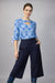 Blusa estampada azul con detalle frontal