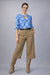 Una blusa que equilibra sofisticación y frescura en cada detalle. Con un delicado estampado geométrico en tonos azules, esta pieza destaca por su sutil abertura frontal que aporta un toque moderno y femenino sin perder elegancia.