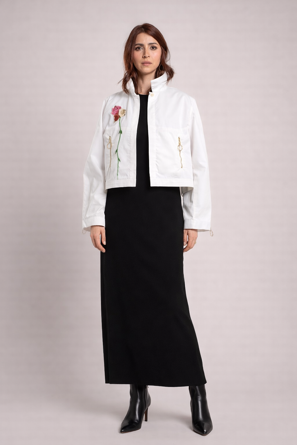 CHAQUETA MARFIL ROSA BORDADA