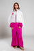 Confeccionada en tono blanco, esta chaqueta destaca por su diseño estructurado y el contraste elegante del cuello en tonos combinados. Los cierres dorados añaden un toque de luz y sofisticación, convirtiéndola en una prenda ideal para transformar cualquier look en una declaración de estilo.