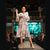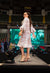 VESTIDO ESTAMPADO EN VERDE MENTA Y DORADO